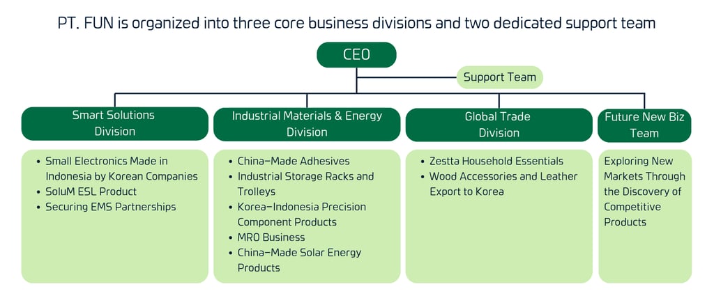 PT FUN (PT Fajar Unggul Nusantara) A local Indonesian General Trading Company specializing in international marketing, trade, and distribution
