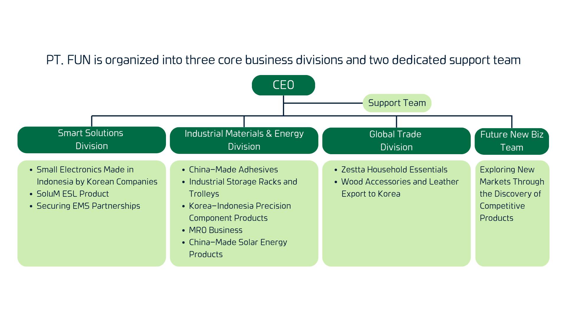 PT FUN (PT Fajar Unggul Nusantara) A local Indonesian General Trading Company specializing in international marketing, trade, and distribution